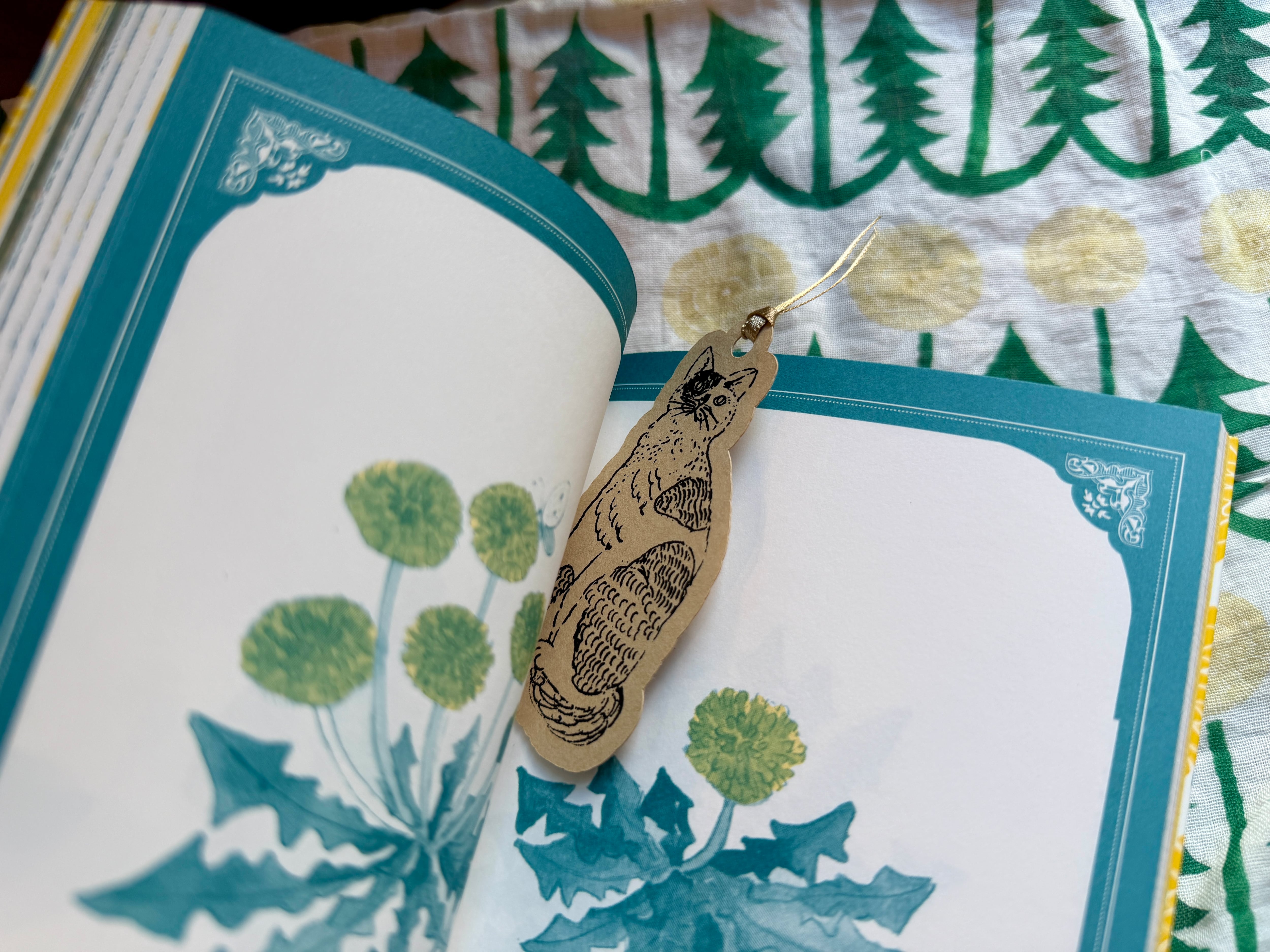 イラストレーターのいのうえ彩さんに描いてもらった、当店の看板猫・よしことマツコのダイカットしおりです。