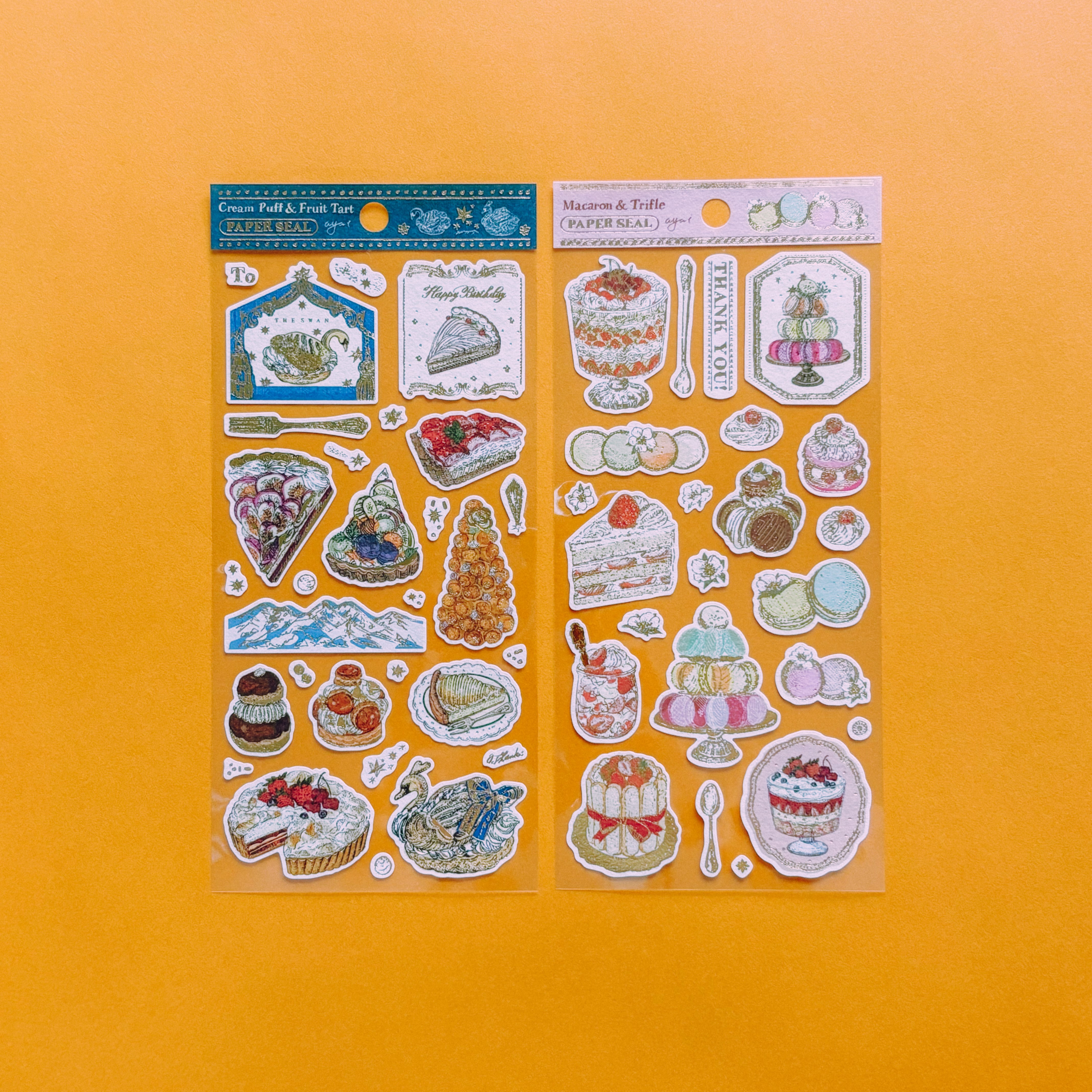 マカロンやトライフルがメインのシートはカラフルで可愛く、