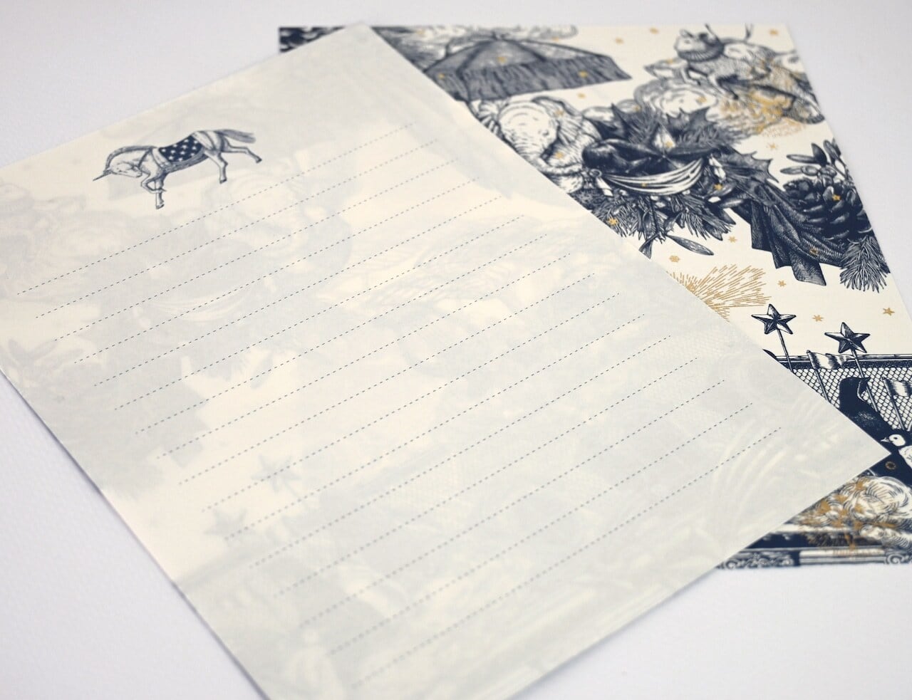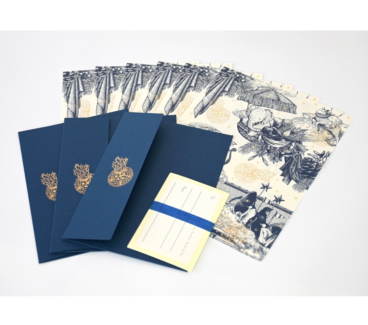 濃紺の封筒にはゴールドの流れ星の箔押しがされていて、封筒を開くときの楽しさをより掻き立てます。便箋、封筒等もに高品質な紙を使用しており描きやすく、優しい手触りで想いを丁寧に綴ることができます。