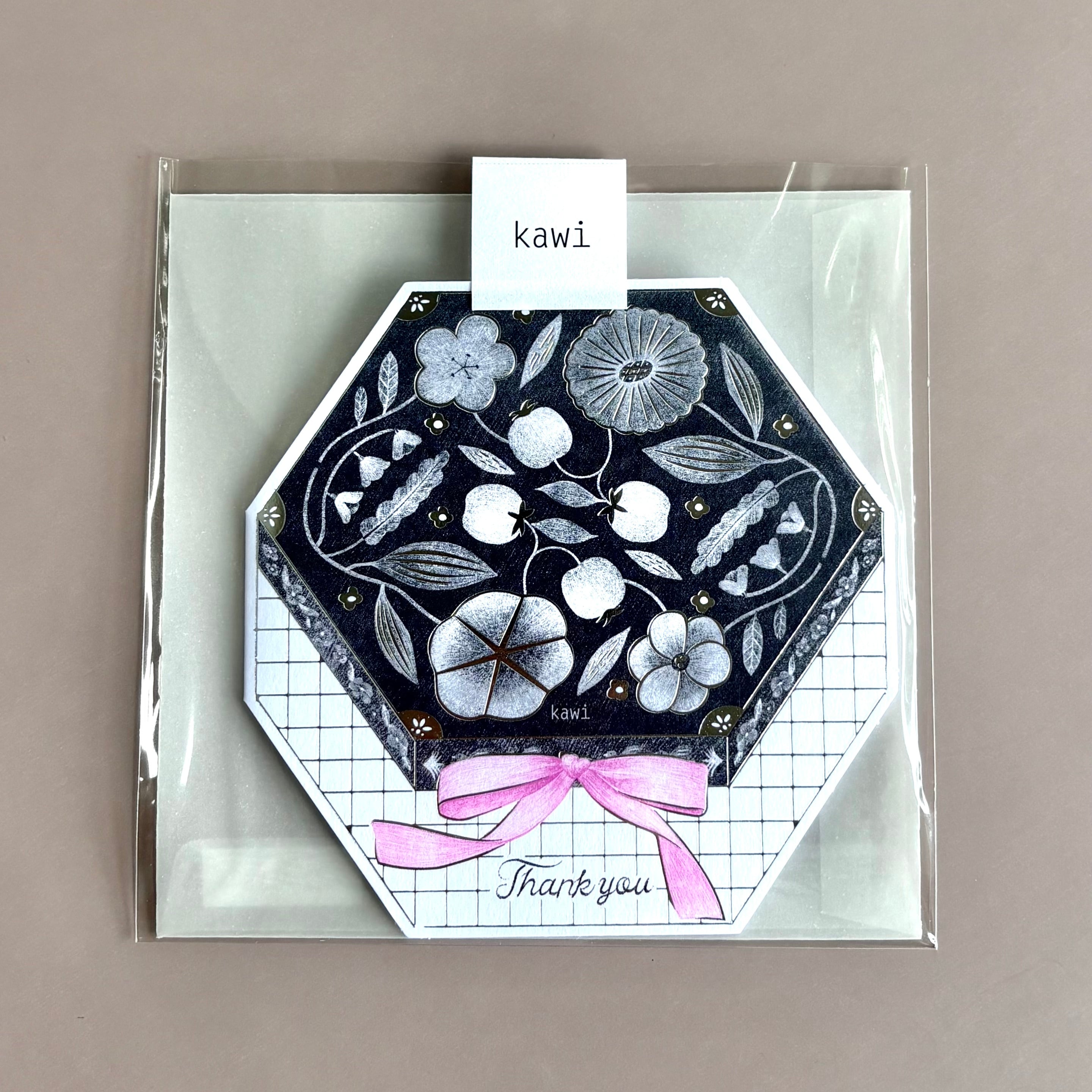 ポイントでところどころに箔押しがされ、ほんのりキラキラと輝く上品なお花のイラスト。