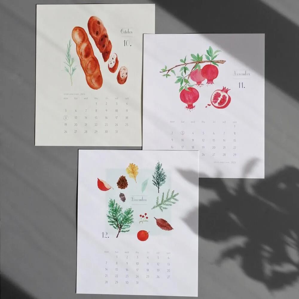 綴じられていない、1枚ずつのカレンダーなので壁に貼ったり、額に入れたり